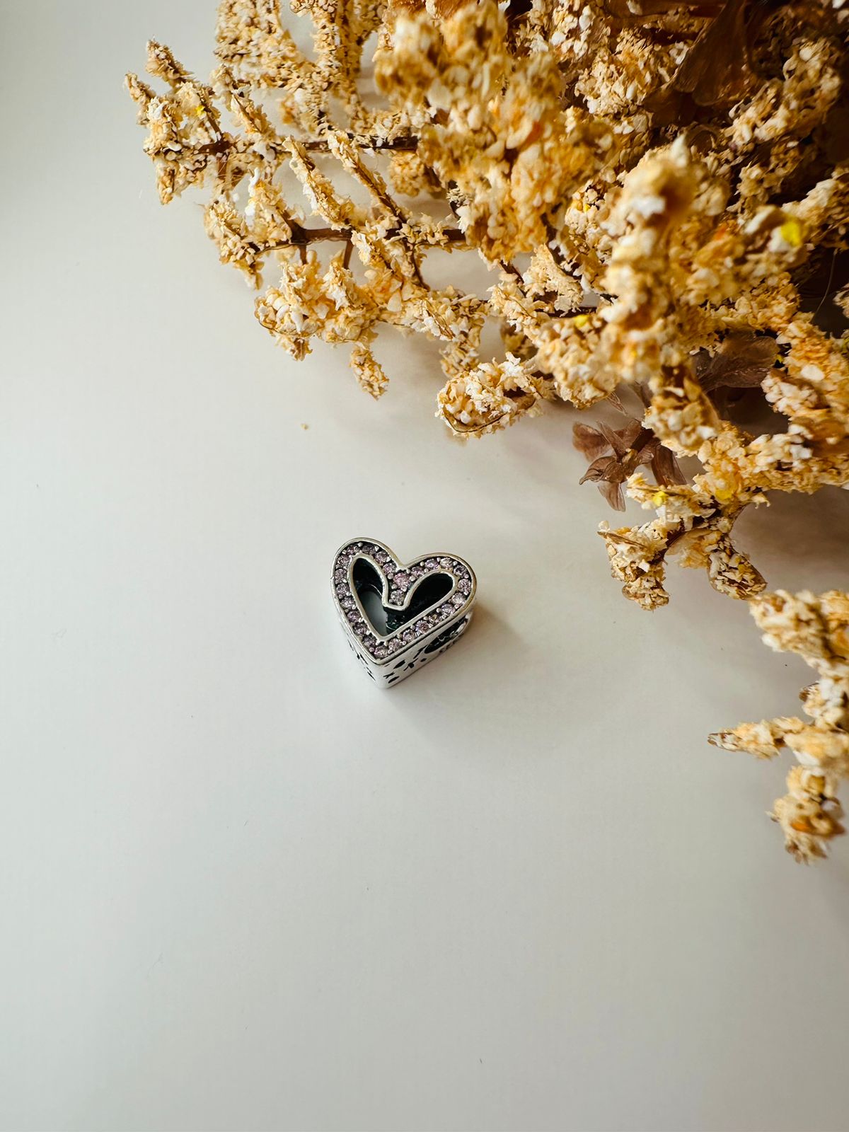 Berloque coração cravejado rosa