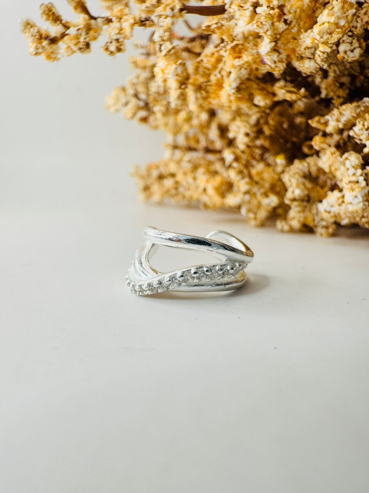 Brinco fake 3 fios 2 lisos 1 cravejado