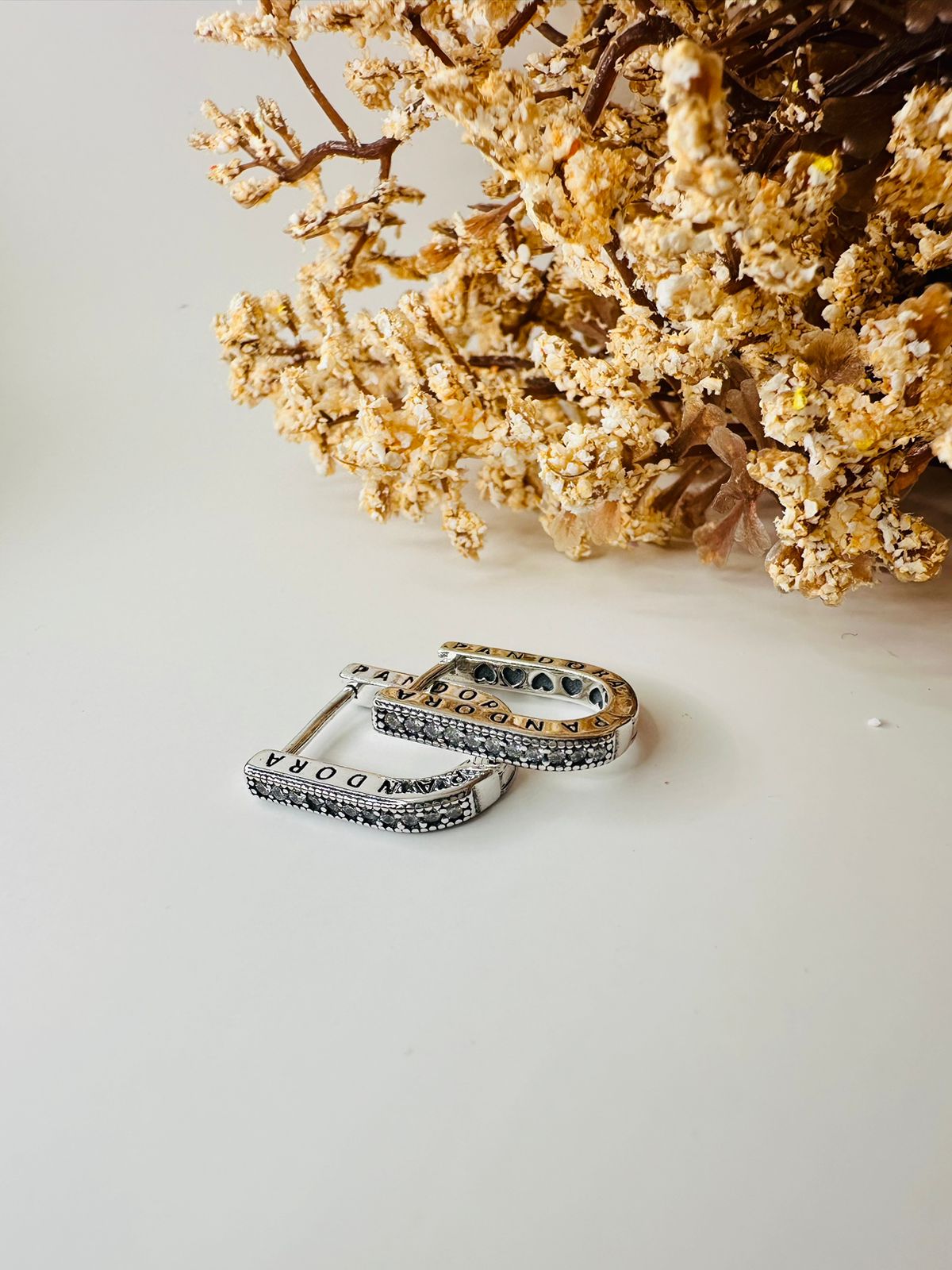 Brinco inspiração Pandora argola em U cravejada
